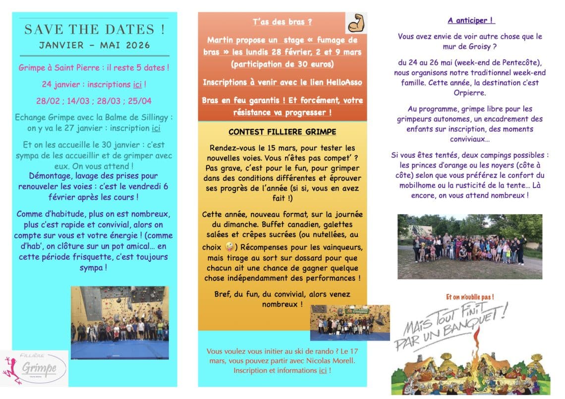 L’objectif est d’initier et de faire progresser un groupe de jeunes dans la pratique de l’escalade en couenne, en grande voie, en via ferrata et le canyoning. C’est aussi l’occasion de s’amuser et de parcourir des itinéraires qui laisseront des…