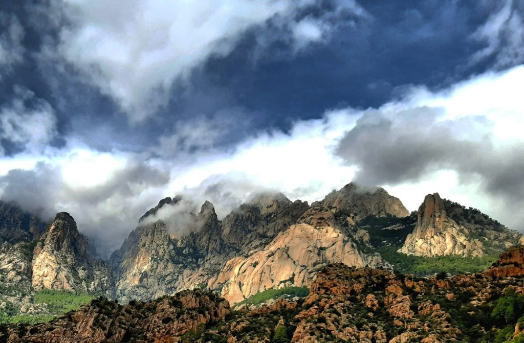 Ce stage se fera dans continuité du précédent, mais en ciblant des voies relativement bien équipées et plutôt orientées plaisir. Nous sommes toujours dans les aiguilles de Bavella en Corse un des plus beaux massifs de France (voir d’Europe). C’est un ensemble de pointes granitiques découpées qui offrent de nombreux itinéraires d’escalade, de randonnée ou de canyoning. Pour la grimpe, le rocher offre des configurations très variées telles que des dalles, fissures, arêtes, piliers, etc. et surtout les fameux taffoni en forme de creux arrondis de quelques centimètres à plusieurs mètres de diamètre, creusée par l’érosion sur des surfaces rocheuses plus ou moins verticales.