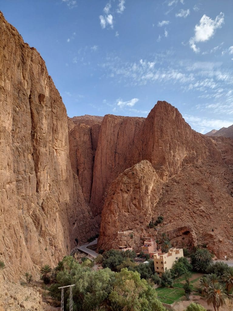 Hautes de 300 mètres, ces falaises de calcaires rougeâtres sont un régal pour les grimpeurs. Le rocher est incroyablement adhérent et présente une grande variété de configurations : piliers, fissures, parois verticales, arêtes… Vous pouvez grimper en couenne de 4c à 8a ou partir à l’aventure dans les grandes voies (jusqu’à 500 mètres d’escalade pour les plus longues). Outre la grimpe, une visite du désert marocain, des promenades dans la palmeraie, la visite de souks, ou quelques découvertes culinaires (il n’y a pas que du couscous !) viendront agrémenter ce voyage au Maroc.