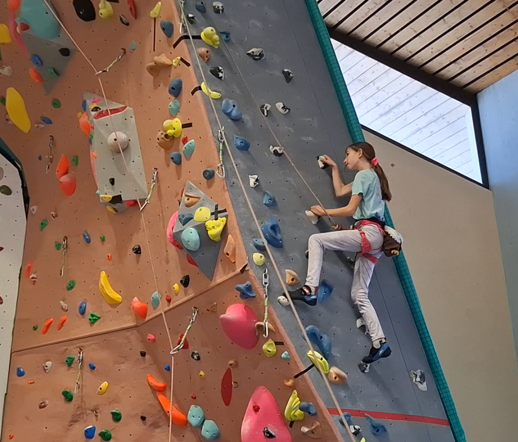 Deuxième acte : sortie dans une salle de bloc exceptionnelle, Arkose, pour changer de style et de sensations. Les jeunes ont pu se confronter à une belle dalle bien technique, parfaite pour travailler l’équilibre, la précision… et apprendre à faire confiance à ses pieds (même quand on n’est pas totalement convaincu). Un excellent entraînement en vue du futur stage à Fontainebleau. Et parce qu’il fallait bien un peu de fun, le groupe a aussi affronté un dévers très ludique, où les bras ont chauffé, les méthodes ont fusé, et les chutes se sont faites dans la bonne humeur.