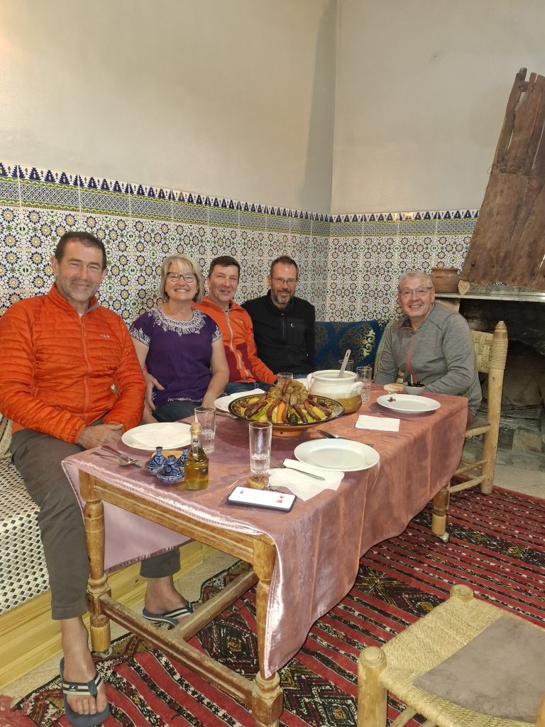 Lors de notre rituel du soir (apéro et Ialuset), Bernadette nous raconte sa journée : neuf heures de marche pour atteindre un des sommets des environs avec toujours autant de découvertes (faune et flore) grâce à Madjoub. Au repas, nous avons un magnifique couscous qui nécessite un peu d’effort pour terminer tous les plats…