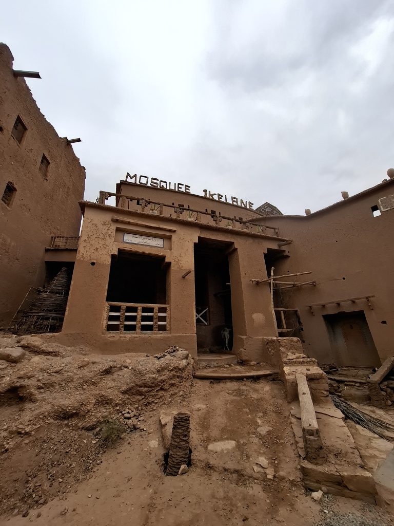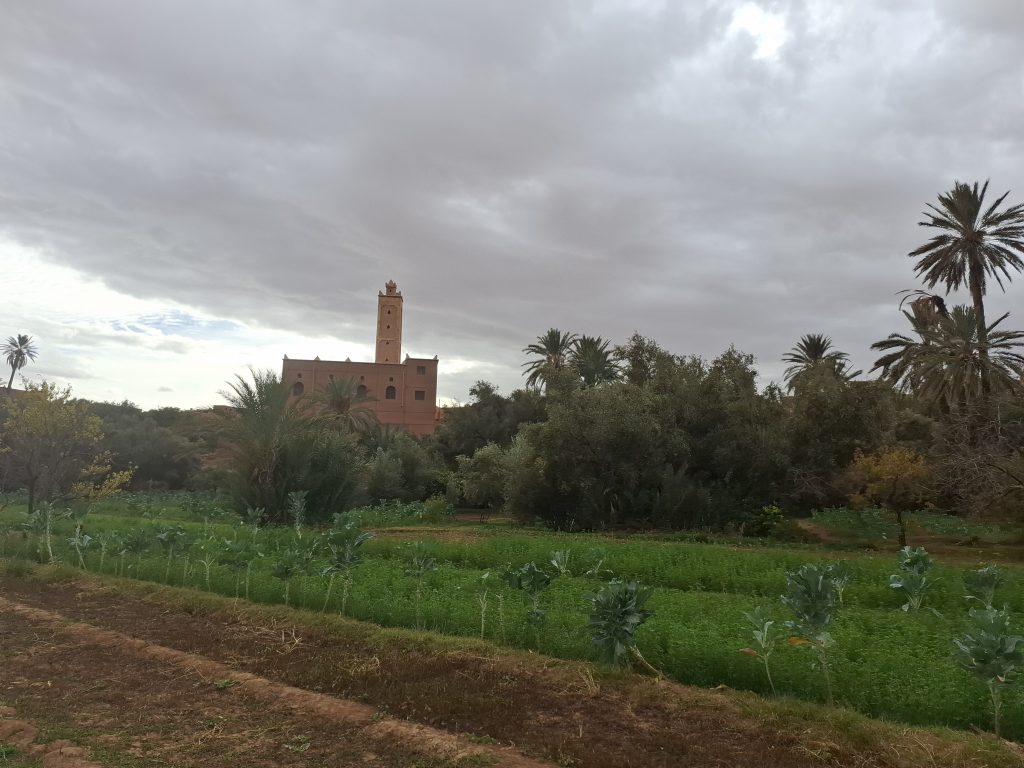 Jeudi 13 novembre, c’est une journée de repos. Nous faisons une petite session de couenne au secteur « jardin d’été » lors de laquelle nous motivons Bernadette à grimper et où nous révisons différentes manips (gestion d’une corde trop courte, réchappe, et remontée sur corde). Puis nous retournons à l’hôtel pour rejoindre Madjoub qui va nous conduire à travers la palmeraie jusqu’à Tinghir (13km de marche) en passant par les ruines de l’ancienne cité et une mosquée traditionnelle en réfection. Ses explications techniques sur le processus de fabrication des maisons en terre sont très instructives.