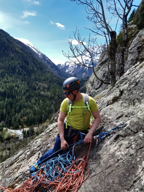 Pourtant, cette entrée en matière ne les a pas refroidis, puisque le 10 avril, ils récidivaient dans la voie « Là bas si j’y suis » à la Pierre Taillée (notre falaise locale). Cette fois-ci, le temps était nuageux et très venteux, mais cela ne les a pas arrêtés. Nous avons même fait un peu de « rab » en grimpant une des longueurs en 6a sur la deuxième partie de la falaise. Au total, nous avons grimpé 150 mètres. Visiblement, j’étais donc avec deux durs à cuire.